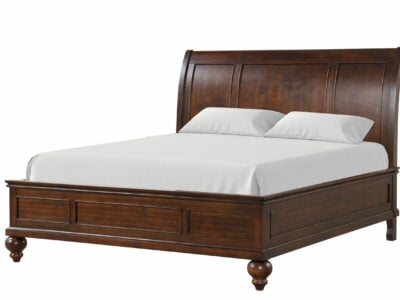 The Alisdair King Bed is the ultimate expression of classic style and comfort. Featuring a traditional sleigh design, this bed is crafted from high-quality wood and finished in a deep, warm cherry-brown tone that adds depth and richness to any bedroom.