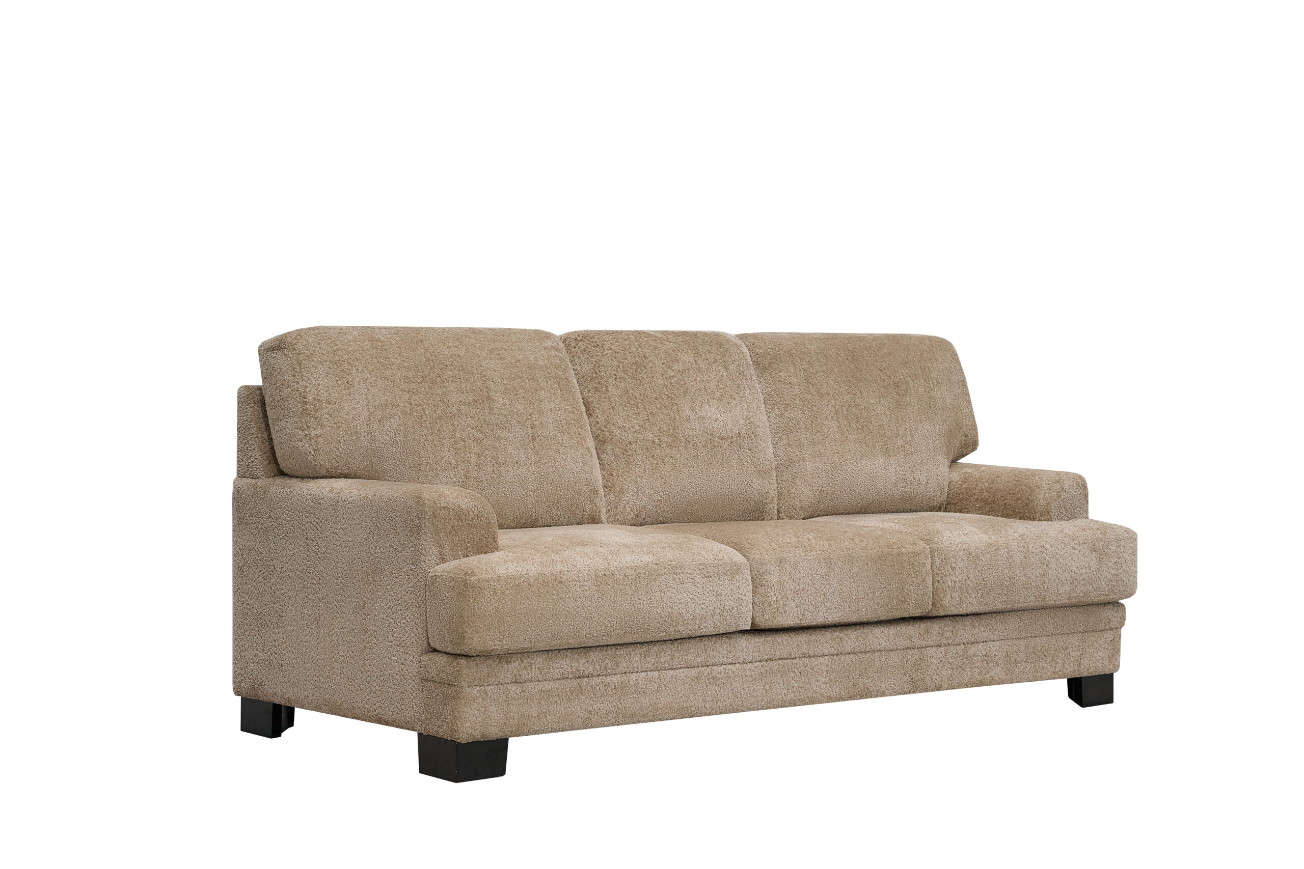 The sofa is upholstered in soft, high-quality fabric with a warm brown finish that adds a cozy and sophisticated feel to any interior. Plush cushions provide superior comfort, while the sturdy wooden frame ensures long-lasting performance.