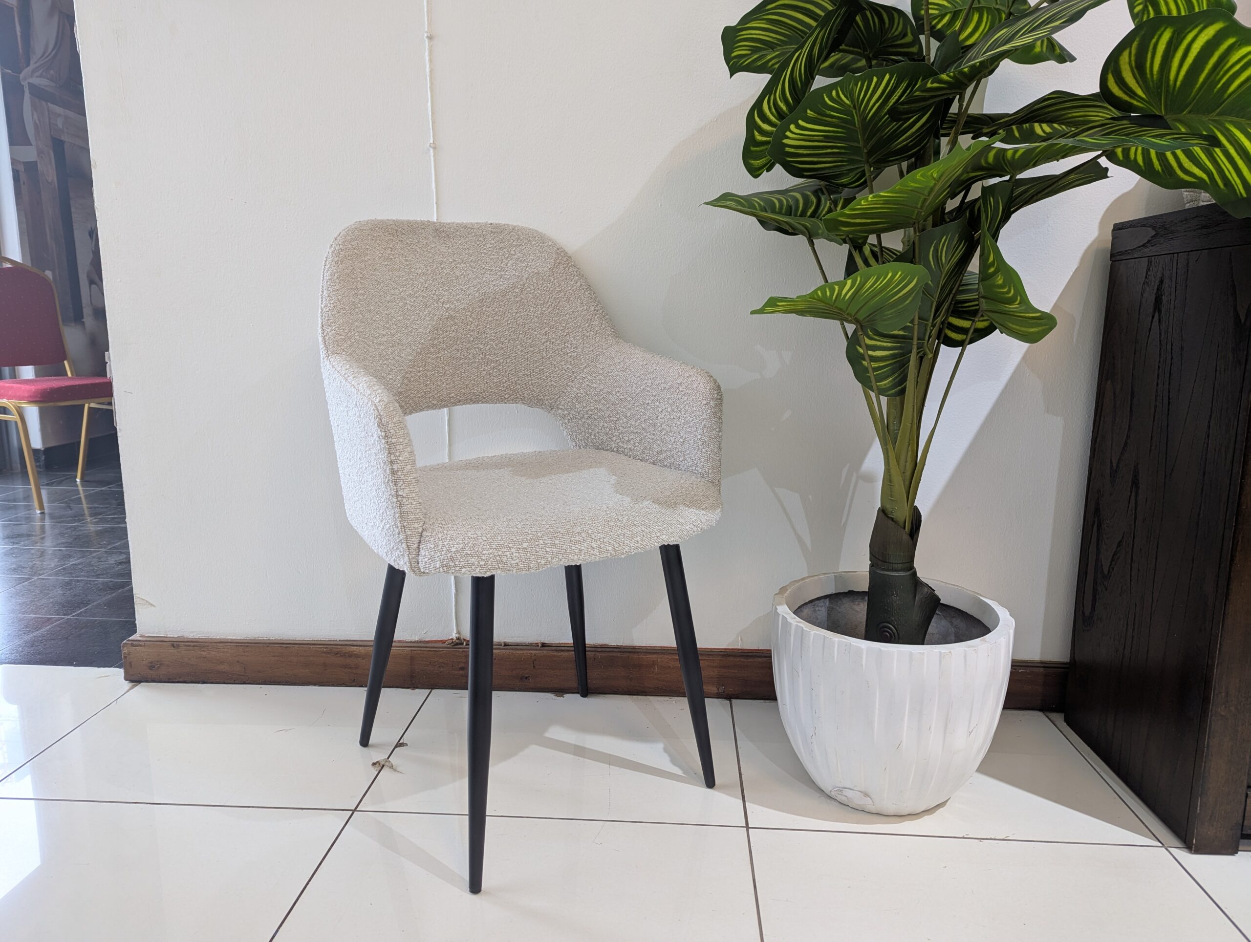 The softly curved chairs offer ergonomic comfort with a contemporary design, while the sturdy base and premium materials ensure durability. Whether for your home or a stylish apartment in Nairobi, this dining set adds a refined touch to any space.
